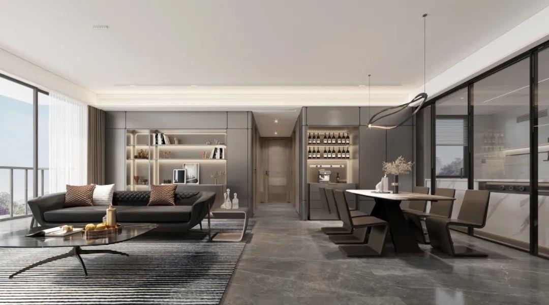 中海从人体工学动线、家庭结构以及生活习惯等方面多维考虑,优化家庭日常生活方式,将LDK(客餐厨)一体升级,在 约129㎡户型 上创新引入 “LDKG”新型空间理念 ,打造超尺度的家庭厅。